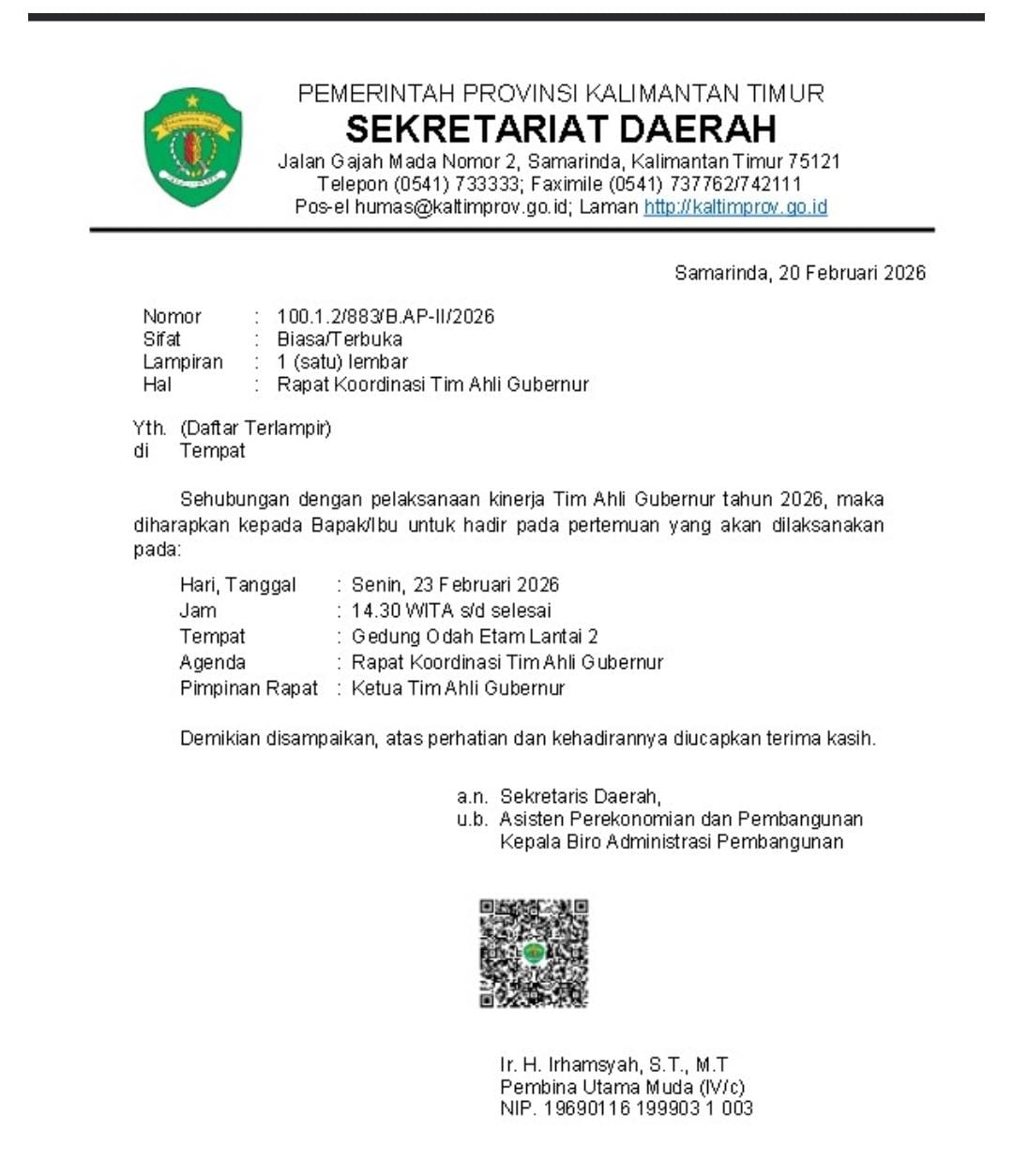 Dalam undangan yang diteken secara elektronik, disebutkan bahwa agenda ini dilaksanakan dalam rangka pelaksanaan kinerja Tim Ahli Gubernur Tahun 2026.