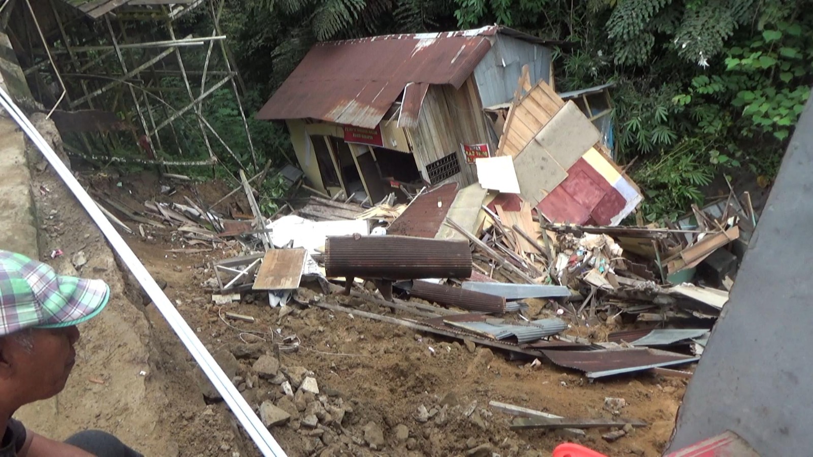 “Barang-barang sempat kami selamatkan. Setelah itu terdengar gemuruh dan bangunannya langsung jatuh,” katanya.