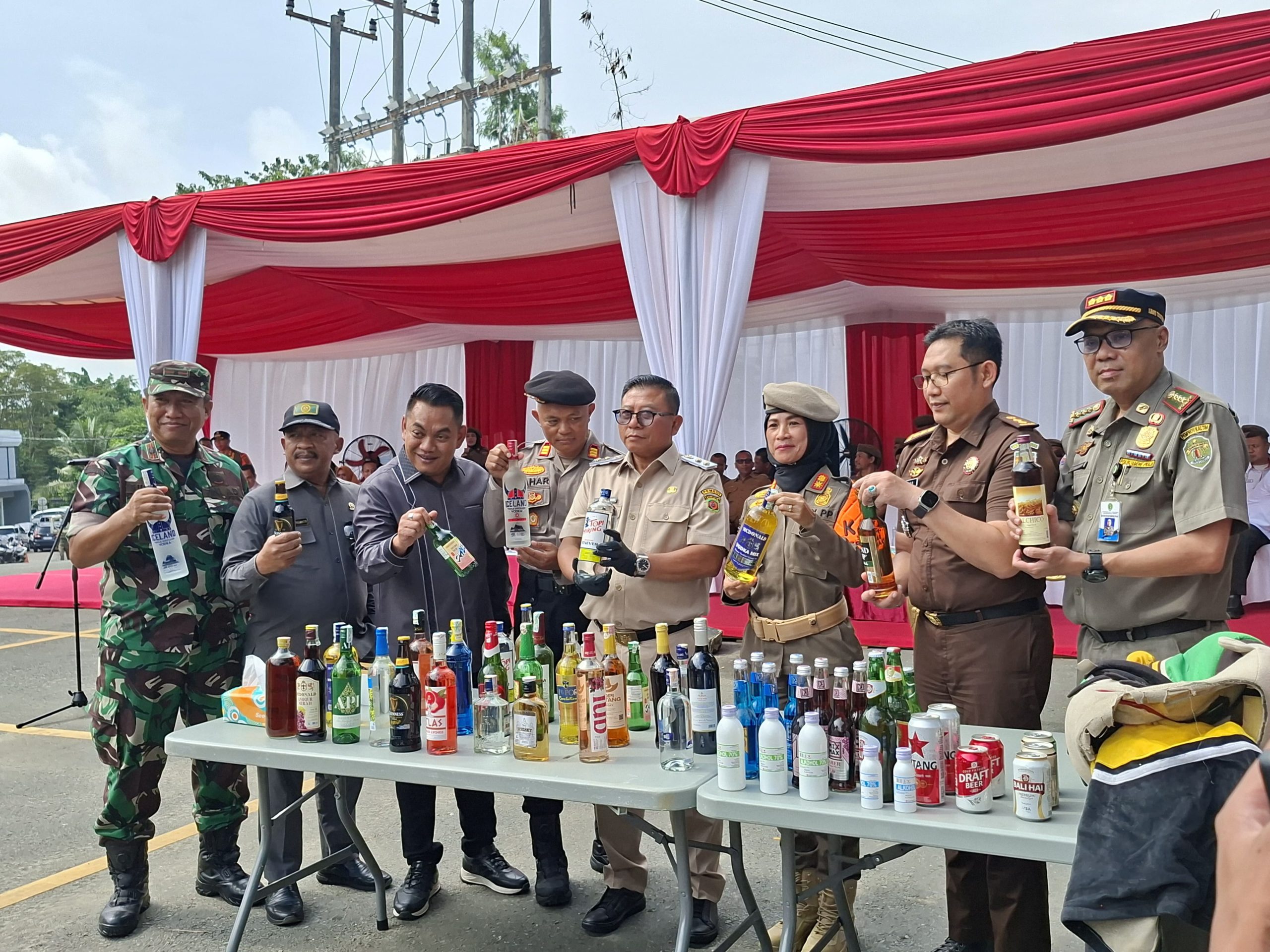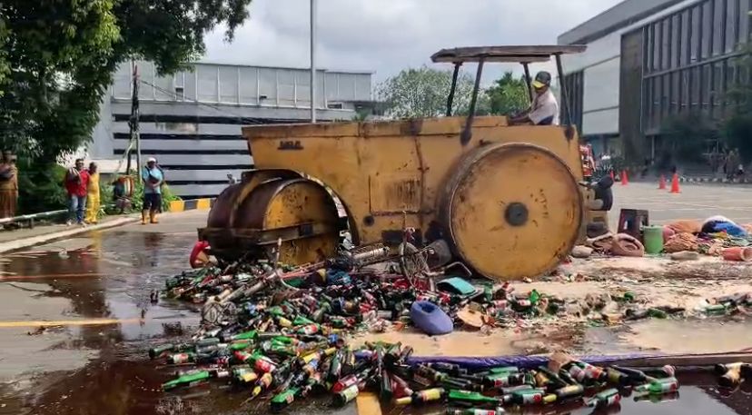 Pemusnahan ini mengacu pada Perda Nomor 4 Tahun 2025 tentang Ketertiban Umum dan Ketenteraman Masyarakat serta Perda Nomor 5 Tahun 2023 tentang Larangan Penjualan Minuman Beralkohol. Selain miras, sejumlah barang hasil razia lain seperti kostum badut, gitar, kursi plastik, payung, termos, hingga sepeda juga digilas dengan mesin penggilas sebagai bukti ketegasan di lapangan.