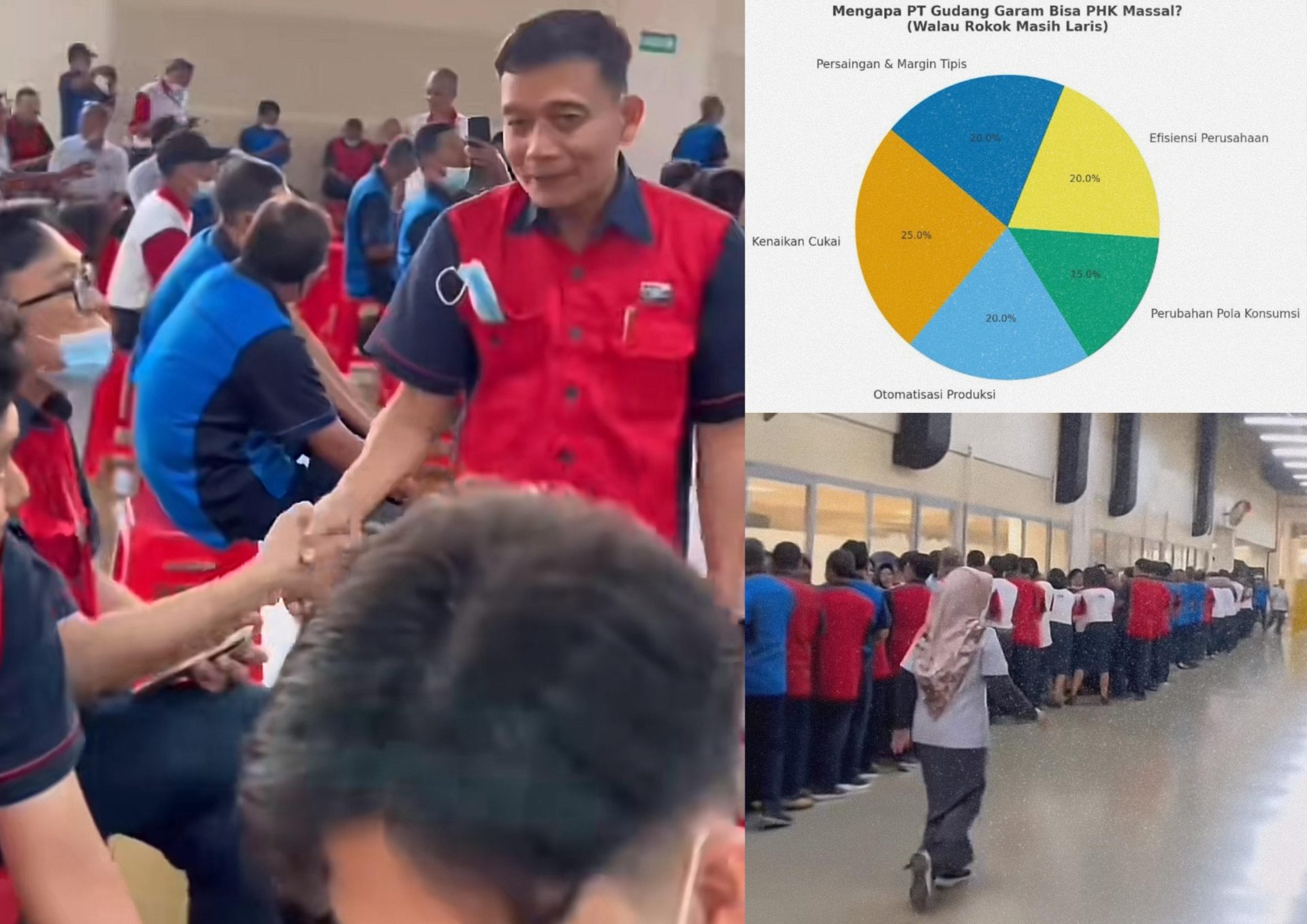 Jawa Timur, VivaNusantara- Baru-baru ini beredar vidio yang diduga PHK massal yang terjadi di PT Gudang Garam Tuban. Hal ini menimbulkan pertanyaan besar di tengah masyarakat. Bagaimana mungkin sebuah pabrik rokok yang produknya masih laris di pasaran justru melakukan pemutusan hubungan kerja terhadap ratusan buruhnya?