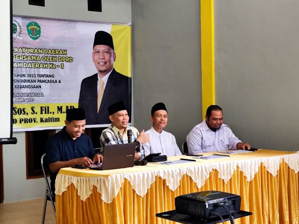Kutai Kartanegara – DPRD Kalimantan Timur menggelar Sosialisasi Peraturan Daerah tentang Penyelenggaraan Pendidikan Pancasila dan Wawasan Kebangsaan, untuk mengoptimalkan pengembangan dan pelaksanaan nilai kebangsaan melalui penguatan kesadaran berbangsa dan bernegara yang berlandaskan nilai pancasila. Dengan memperkuat pemahaman masyarakat tentang empat konsensus kebangsaan, yaitu Pancasila, UUD 1945, NKRI, dan Bhinneka Tunggal Ika. Kegiatan ini berlangsung di Kelurahan Mangkurawang, Kecamatan Tenggarong, Kabupaten Kutai Kartanegara, Jumat (7/3/2025).