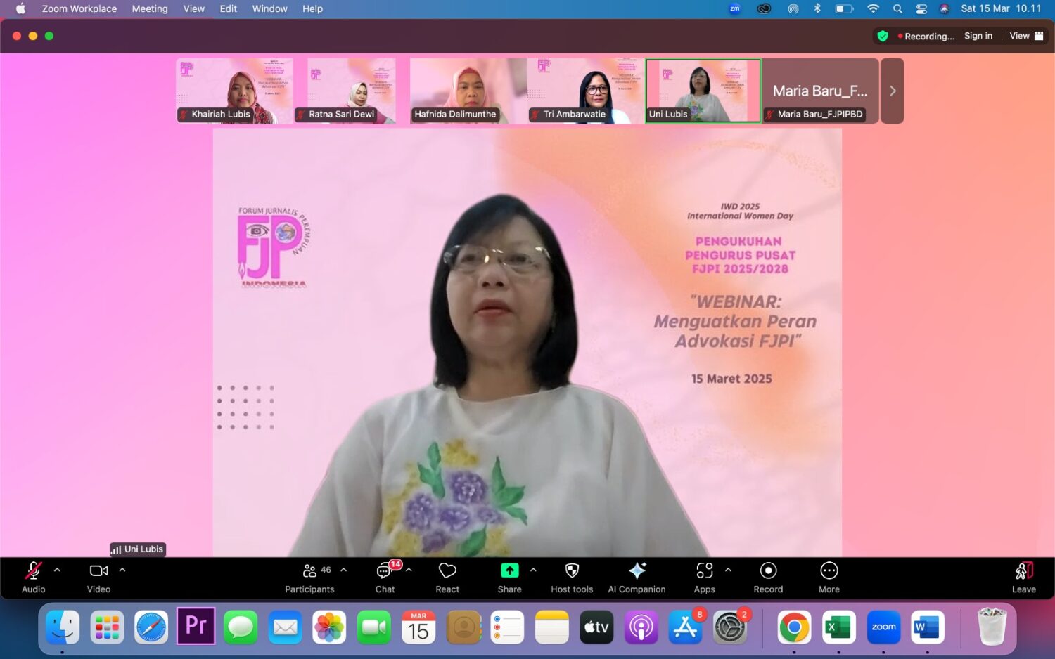 Jajaran pengurus pusat Forum Jurnalia Perempuan Indonesia (FJPI) periode 2025 – 2029 saat dikukuhkan, Sabtu (15/3/2025)